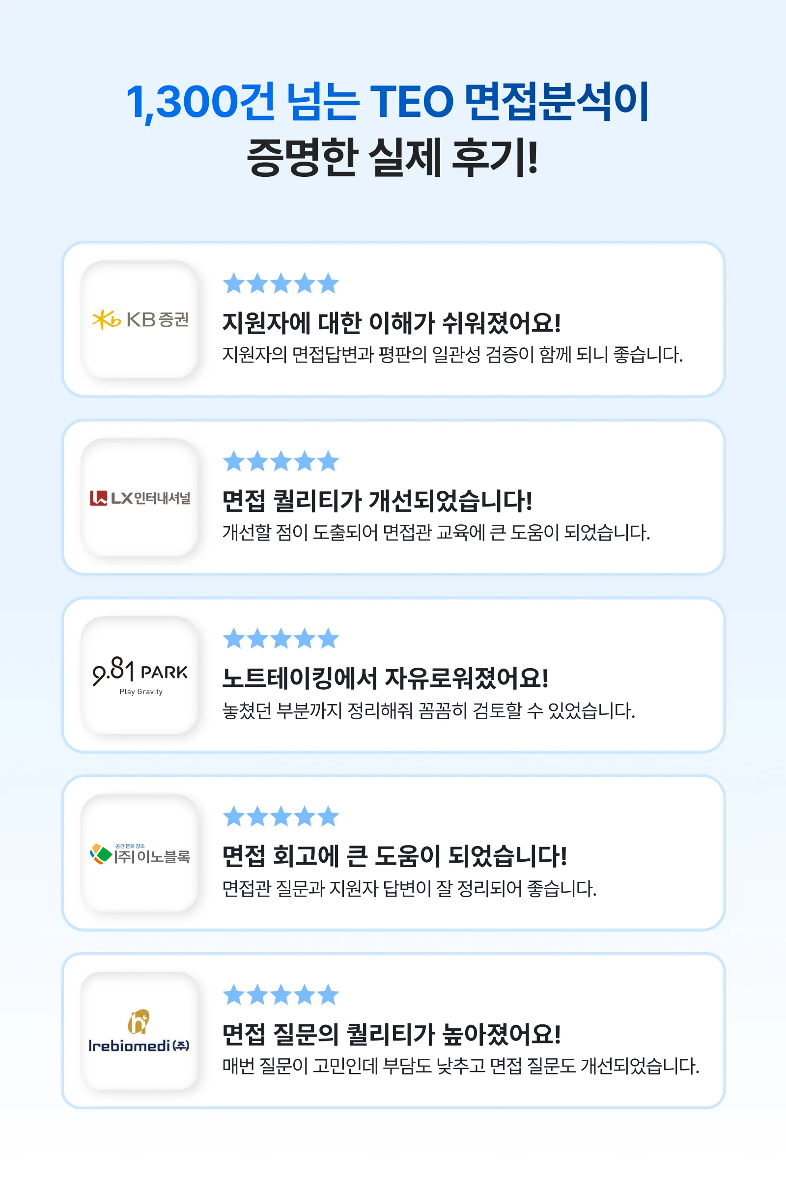 면접 분석 앱 TEO, 실제 사용 기업들의 후기와 사용 방법 공개! 출시 후 첫 달 평균 4.9회 사용된, 검증된 채용 파트너 TEO를 만나보세요.