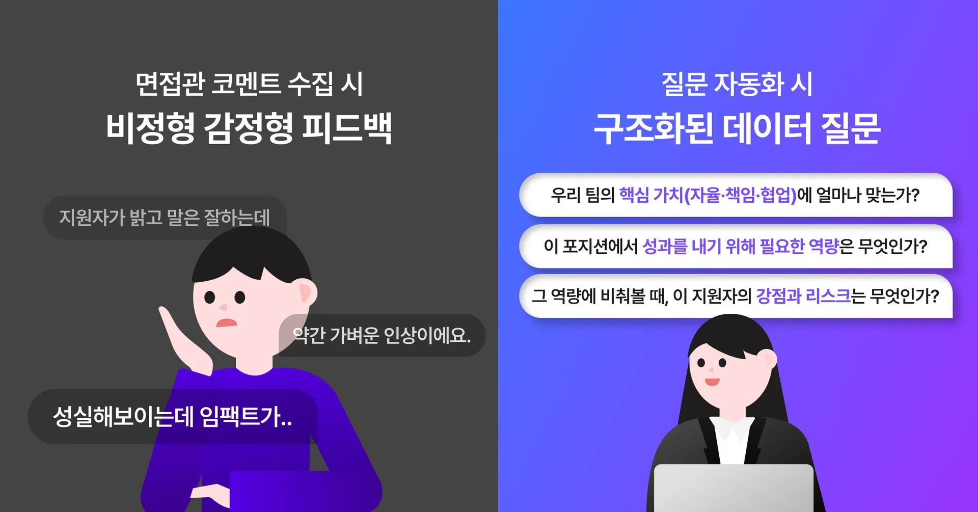또한 AI는 언어적 편향을 줄이고, 지원자의 강점·약점 패턴을 시각화해 객관적인 비교를 가능하게 합니다.