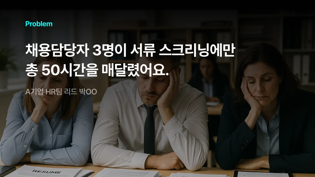 채용담당자 3명이 지원자 당 2분씩 3,000분. 총 50시간을 오롯이 1차 스크리닝에만 매달려야 했습니다.