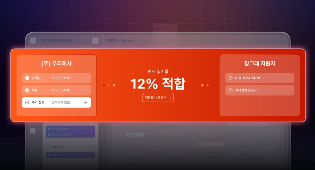 TEO의 AI 서류 스크리닝은 50시간을 쓰던 업무를 1시간으로 단축했습니다.