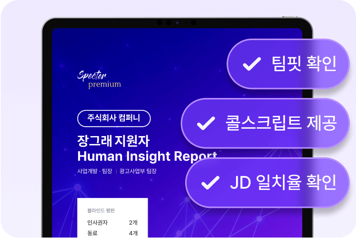 우리가 생각하는 기준을 95% 이상 충족해요. 의사결정이 어려운 지원자에 대해 HR에서 데이터 기반으로 납득시킬 수 있어서 큰 도움이 됩니다.